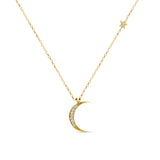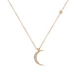 Collier avec Diamants - Lune Premier Croissant et Étoile