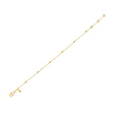 Cette chaîne de cheville en or 14 carats comporte des petites boules en or alignées le long de la chaîne en or.