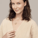 Vous avez le pendentif disponible en deux longueurs. Une chaîne de 45 cm ou bien de 70 cm. Disponible aussi en or rose.