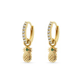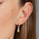 Nos créoles en or 14 carats ont deux pendentifs ananas avec un émeraude vert. Leur légèreté et leur confort vous accompagneront en douceur tout au long de la journée jusqu’au dîner en soirée.