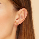 Ces boucles d’oreilles s’assortissent particulièrement bien avec notre collier et bracelet de perles. Le design est disponible dans deux finitions, or blanc ou or rose.