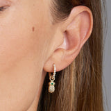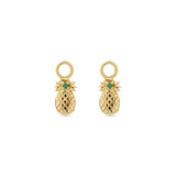 Les pendentifs ananas en or 14 carats sont ornés de émeraude sertis à la main. Portez-les avec nos Créoles Diamant ou nos Créoles Essential.
