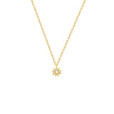 Notre pendentif en or 14 carats pour les petites filles est orné d'une fleur en émail bleu et blanc peint à la main.